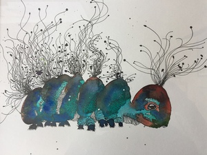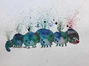 2019Sprankelende kleuren op een in zichzelf gekeerde rups