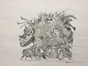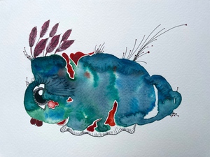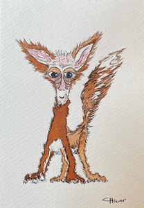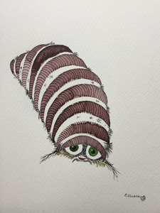2020Intens gekleurde rups met prachtig zwaaiende haren In passepartout en met houten lijst